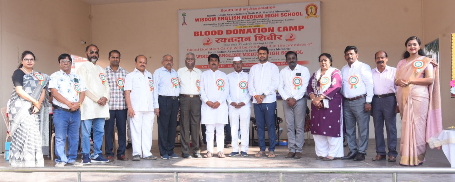 किवळे : विकासनगर येथील साऊथ इंडियन असोसिएशन व एस्. आय. एस्. शेठ एच ए बरलोटा मेमोरियल विस्डम इंग्लिश मिडीयम हायस्कूल यांच्या विद्यमाने शाळेच्या आवारात रक्तदान शिबीर घेण्यात आले . शिबीराला चांगला प्रतिसाद लाभला . शिबीरात ७० पिशव्या रक्त संकलित करण्यात आले .