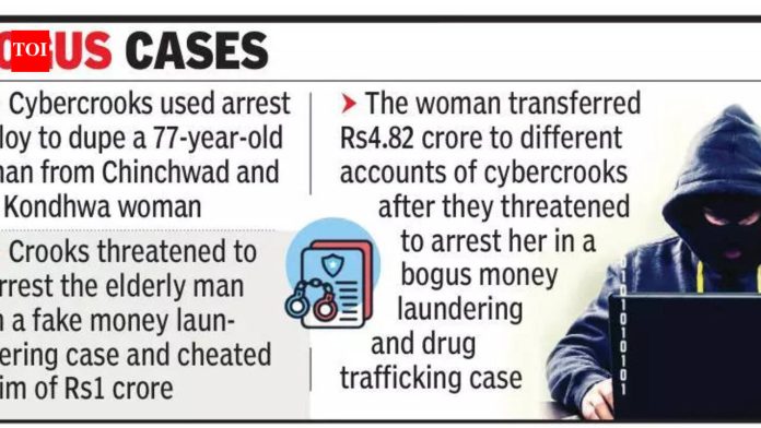 सायबर चोरांच्या आणखी एका टोळीने चिंचवड येथील ७७ वर्षीय व्यक्तीला बनावट मनी लॉन्ड्रिंग प्रकरणात अटक करण्याची धमकी देऊन त्यांची १ कोटी रुपयांची फसवणूक केली. त्यांनी सोमवारी पिंपरी चिंचवड सायबर पोलिसात तक्रारही दिली.पिंपरी चिंचवड सायबर पोलिसांचे वरिष्ठ निरीक्षक रविकिरण नाळे यांनी सांगितले की, हे वृद्ध एका खासगी कंपनीतून निवृत्त झाले होते. गेल्या वर्षी ३० डिसेंबर रोजी त्यांना एका अनोळखी क्रमांकावरून फोन आला होता. फोन करणाऱ्याने स्वत:ची ओळख सीबीआय अधिकारी अशी दिली. एका उद्योगपतीवर कारवाई करताना ईडीच्या अधिकाऱ्यांना त्याच्या नावाने उघडलेले बँक खाते सापडल्याचे या घोटाळेबाजाने ज्येष्ठ नागरिकाला सांगितले. याचा वापर मनी लॉन्ड्रिंगसाठी होत असल्याचेही कॉलरने पीडितेला सांगितले.“नंतर बदमाशांनी व्हिडिओ कॉलद्वारे पीडितेशी संपर्क साधला,” नाले म्हणाले. अधिकाऱ्याने सांगितले की, गुन्हेगारांनी वृद्ध व्यक्तीला सांगितले की चौकशी पूर्ण होईपर्यंत तो त्यांच्या देखरेखीखाली असेल. बदमाशांनी त्याच्या कुटुंबातील सदस्य, बँक खाती आणि इतर बचतीचा तपशील घेतला. त्यांना अटक होऊ शकते, असेही त्यांनी पीडितेला सांगितले.“बोगस सीबीआय अधिकाऱ्याने पीडितेला सांगितले की त्याला त्याची बँक बॅलन्स आणि म्युच्युअल फंडांची कायदेशीरता तपासण्याची गरज आहे. बदमाशांनी त्याला 30 डिसेंबर ते 14 जानेवारी दरम्यान वेगवेगळ्या बँक खात्यांमध्ये 1 कोटी रुपये ट्रान्सफर केले आणि पडताळणी प्रक्रिया संपल्यानंतर पैसे परत करण्याचे आश्वासन दिले,” अधिकाऱ्याने सांगितले.पैसे परत न मिळाल्याने आपली फसवणूक झाल्याचे वृद्धाच्या लक्षात आले. आम्ही पीडितेच्या बँकेकडून व्यवहारांचा तपशील मागितला आहे, असे नाळे यांनी सांगितले.कोंढव्यातील महिलेच्या फसवणुकीप्रकरणी कट. तिने गतवर्षी 18 डिसेंबर ते या वर्षी 15 जानेवारी दरम्यान सायबर चोरांकडे 4.82 कोटी रुपये हस्तांतरित केले.पोलिसांनी दिलेल्या माहितीनुसार, महिलेला फसवणूक करणाऱ्यांचा फोन आला तेव्हा ती एकटीच होती. त्यांनी कुरिअर कंपनीचे अधिकारी असल्याचा दावा केला आणि तिला सांगितले की तिने थायलंडला औषधे, लॅपटॉप आणि इतर कागदपत्रे असलेले पार्सल पाठवले होते. ती शांत होण्याआधीच तिला दुसरा कॉल आला. या वेळी कॉलरने दावा केला की तो मुंबई सायबर पोलिसांचा अधिकारी आहे आणि तिने तिला सांगितले की ती मनी लॉन्ड्रिंग आणि ड्रग्ज तस्करी प्रकरणात सामील आहे. त्यानंतर अधिकाऱ्याने तिला अटक करण्याची धमकी दिली आणि तिची बँक आणि वैयक्तिक तपशील मागितला.पोलिसांनी सांगितले की कॉलरने महिलेला तिचे सर्व तपशील शेअर केल्यानंतर पैशाच्या बदल्यात मदत करण्याचे आश्वासन दिले. महिलेने आठ वेगवेगळ