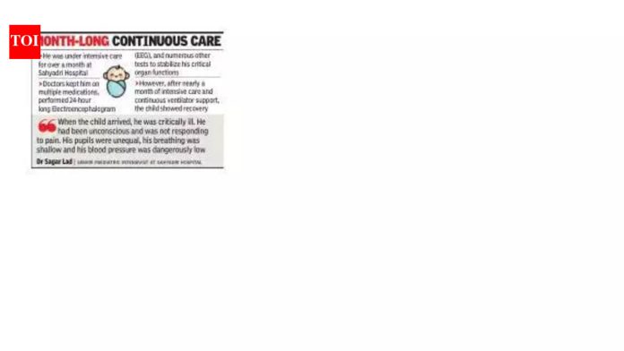 डॉक्टरांनी ताबडतोब मुलाला इंट्यूब केले आणि व्हेंटिलेटर सपोर्टवर ठेवले. “आम्हाला त्याचा रक्तदाब स्थिर करण्यासाठी, मेंदूतील दाब कमी करण्यासाठी आणि फेफरे नियंत्रित करण्यासाठी अनेक औषधे सुरू करावी लागली,” डॉ लाड म्हणाले. सीटी स्कॅनमध्ये कवटीच्या पॅरिएटल आणि टेम्पोरल हाडांमध्ये फ्रॅक्चर आणि मेंदूमध्ये रक्तस्त्राव झाल्याचे दिसून आले.ज्येष्ठ न्यूरोसर्जन डॉ. सचिन महाजन यांनी तपासणी केल्यानंतर बालकाला आयसीयूमध्ये पारंपारिकपणे व्यवस्थापित करण्यात आले. मात्र, त्यांची प्रकृती आणखीनच खालावली. रुग्णालयातील ज्येष्ठ बालरोगतज्ञ डॉ प्रतीक कटारिया म्हणाले, “त्याला गंभीर झटके आले आणि त्याचा रक्तदाब लक्षणीयरीत्या कमी झाला, ज्यामुळे रक्ताभिसरणासाठी दोन ते तीन औषधांची आवश्यकता होती.”EEG चाचणीने दृश्यमान आक्षेप नसतानाही चालू असलेल्या जप्ती क्रियाकलाप उघड केले – ही स्थिती नॉन-कन्व्हल्सिव्ह स्टेटस एपिलेप्टिकस म्हणून ओळखली जाते. “ही जीवघेणी न्यूरोलॉजिकल आणीबाणी आहे कारण मेंदूच्या आत झटके येत राहतात आणि मेंदूचा दाब झपाट्याने वाढू शकतो,” डॉ लाड यांनी स्पष्ट केले. मुलाला 24 तास सतत ईईजी मॉनिटरिंगवर ठेवण्यात आले आणि अनेक जप्तीविरोधी औषधांनी उपचार केले गेले.एकदा स्थिर झाल्यावर, एमआरआय स्कॅनमध्ये डिफ्यूज एक्सोनल इजा दिसून आली – मेंदूच्या दुखापतीचा एक गंभीर प्रकार – मज्जातंतूंच्या तंतूंना मोठ्या प्रमाणावर नुकसान झाल्यामुळे.आणखी गुंतागुंतीच्या बाबी, मुलाला द्विपक्षीय न्यूमोथोरॅक्स देखील आढळले – दोन्ही फुफ्फुसाभोवती हवा गळती – शरद ऋतूतील बरगडी फ्रॅक्चरमुळे, ज्यासाठी आंतरकोस्टल ड्रेन टाकण्यात आले होते.डॉक्टरांनी हळूहळू व्हेंटिलेटरचा आधार कमी करण्याचा प्रयत्न केला असला तरी, मुलाने अतिशय कमकुवत उत्स्फूर्त श्वास दाखवला. 15 व्या दिवशी, दीर्घकाळापर्यंत वेंटिलेशन करण्यास अनुमती देण्यासाठी ट्रेकीओस्टोमी केली गेली. “प्रवेशानंतर सुमारे 18 ते 20 दिवसांनी, आम्हाला न्यूरोलॉजिकल सुधारणेची चिन्हे दिसू लागली – डोळा उघडणे आणि हातपाय हालचाली,” डॉ लाड म्हणाले, खालच्या अंगांमधील कमजोरी हळूहळू सुधारली.जवळजवळ एक महिना गहन काळजी घेतल्यानंतर, मुलाला व्हेंटिलेटर आणि ऑक्सिजन सपोर्ट बंद करून सोडण्यात आले. डिस्चार्जच्या वेळी, तो प्रतिसाद देत होता, हातपाय हलवत होता आणि उठून बसू लागला होता. सुरुवातीच्या चाचण्यांमध्ये सामान्य सुनावणी दिसून आली, तर दृष्टी निरीक्षणाखाली ठेवण्यात आली.“तीन महिन्यांनंतर पाठपुरावा करताना, आम्हाला आढळून आले की त्यांची दृष्टी आणि ऐकणे पूर्णपणे सामान्य होते. त्यांनी चालणे सुरू केले होते आणि त्यांच्या भाषणाचा विकास वयोमानानुसार होता,” डॉ ला