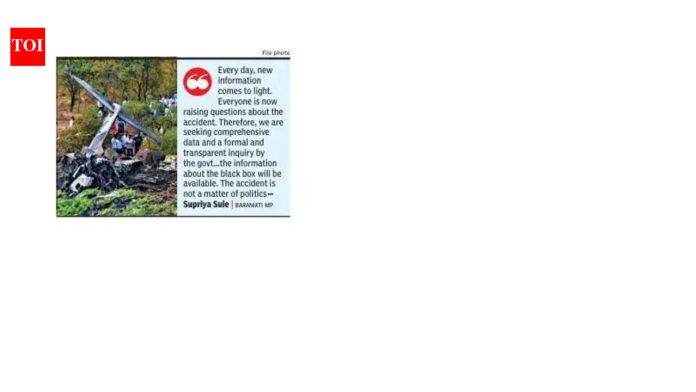 पुणे : माजी उपमुख्यमंत्री अजित पवार यांच्या निधनामुळे झालेल्या विमान अपघाताची सरकारने पारदर्शक चौकशी करावी, अशी मागणी बारामतीच्या खासदार आणि राष्ट्रवादी काँग्रेसच्या (सप) कार्याध्यक्षा सुप्रिया सुळे यांनी बुधवारी केली.“दररोज, नवीन माहिती समोर येत आहे. प्रत्येकजण आता अपघाताबाबत प्रश्न उपस्थित करत आहे. त्यामुळे आम्ही सर्वसमावेशक डेटा आणि सरकारकडून औपचारिक आणि पारदर्शक चौकशीची मागणी करत आहोत,” असे सुळे यांनी शिवाजीनगर येथील पुणे महापालिकेच्या मुख्यालयाला भेट दिल्यानंतर पत्रकारांना सांगितले.“ब्लॅक बॉक्सची माहिती मिळेल. अपघात हा राजकारणाचा विषय नाही,” असे सांगून त्या म्हणाल्या की, अजितदादांना खरी श्रद्धांजली हीच त्यांच्या विकासाच्या अजेंड्याला कामातून चालना देणार आहे.या अपघाताबाबत पत्रकार परिषद घेणारे राष्ट्रवादीचे (सप) आमदार रोहित पवार या प्रकरणाचा शास्त्रीय पाठपुरावा करत असल्याचेही सुळे म्हणाल्या. “मृत्यूमुळे तो खूप हळहळला आणि भावूक झाला. त्याने त्याचा काका गमावला आणि त्याला सत्य जाणून घ्यायचे आहे,” ती म्हणाली.राष्ट्रवादीचे (एसपी) अध्यक्ष शरद पवार यांना पुन्हा राज्यसभेवर उमेदवारी दिली जात आहे का, असे विचारले असता सुळे म्हणाल्या की, एमव्हीए सदस्य येत्या काही दिवसांत बैठक घेऊन नाव निश्चित करतील.नागरी समस्यांबाबत त्या म्हणाल्या की, वडगावमधील सभागृह आणि शाळा यासारखे प्रकल्प दशकाहून अधिक काळ प्रलंबित आहेत आणि ते प्राधान्याने राबविले पाहिजेत. सिंहगड रोड आणि कात्रज उड्डाणपुलाचे बांधकाम, दुरुस्ती आणि विस्तारीकरणाचे कामही लवकरात लवकर पूर्ण करावे, असे सुळे म्हणाल्या, त्यामुळे वाहतूक कोंडी कमी होण्यास मदत होईल.पाटबंधारे खाते आणि महापालिका एकाच पानावर असली पाहिजेत. ते एकाच सरकारचे भाग आहेत आणि त्यांच्यातील मतभेद हे आरोग्यदायी लक्षण नाही. मुख्यमंत्र्यांनी या प्रकरणात हस्तक्षेप करायला हवा, असे खासदारांनी शहरातील अपुऱ्या पाणीपुरवठ्यावर प्रश्नांना उत्तर देताना सांगितले.शिवाजीनगरमधील गुडलक चौकाजवळील ‘कलाकार कट्टा’ ही मोकळी जागा, जी कलाकारांना त्यांच्या कलागुणांचे प्रदर्शन करण्यासाठी नियुक्त करण्यात आली आहे, ती स्थलांतरित करू नये, असे त्या म्हणाल्या. भाजप नगरसेवकांनी स्थलांतराची मागणी केली.सुळे म्हणाल्या, विलीन झालेल्या भागात मालमत्ता कर वाढवणे योग्य नाही. “नागरी प्रशासन या भागात पुरेशा सुविधा पुरवत नाही, त्यामुळे कर वाढ (प्रस्तावित) समर्थनीय नाही,” ती पुढे म्हणाली.