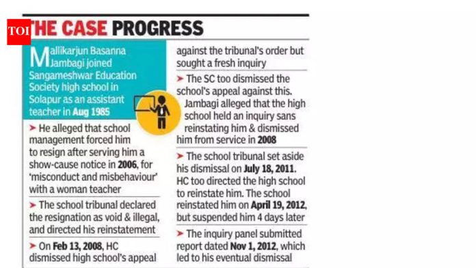 उच्च न्यायालयाने सोलापूरच्या शिक्षकाची बडतर्फीची अनेक त्रुटी, चौकशी प्रक्रियेत उल्लंघन केल्याचे कारण पुढे केले.