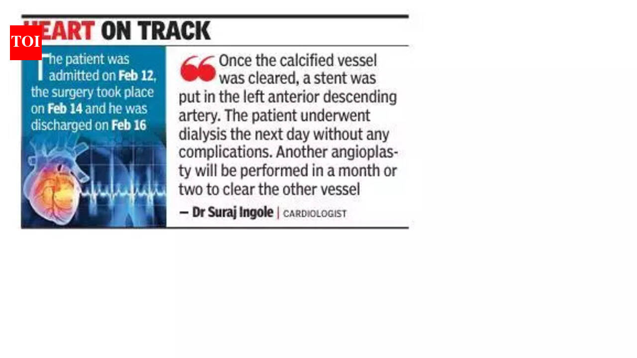 पुणे: पुण्यातील एका खाजगी रुग्णालयात डॉक्टरांनी केलेल्या गुंतागुंतीच्या हृदयाच्या प्रक्रियेमुळे मूत्रपिंड निकामी झालेल्या आणि ट्रिपल वेसल्सच्या आजाराने ग्रस्त असलेल्या एका ६० वर्षीय व्यक्तीचे प्राण वाचले, ज्यामुळे रक्तवाहिन्या अरुंद झाल्या होत्या आणि बायपासचा मार्ग खूप धोकादायक होता.रुग्ण नियमित डायलिसिसवर होता, परंतु त्याचा रक्तदाब कमी होईल आणि प्रक्रियेदरम्यान हृदयाचे ठोके अनियमित झाले. त्यांची प्रकृती हृदयविकाराच्या दिशेने जात होती.अँजिओग्राफीमध्ये ट्रिपल वेसल डिसीज दिसून आला, हा कोरोनरी धमनी रोगाचा एक गंभीर प्रकार आहे, जेथे तीनही प्रमुख हृदय धमन्या (डाव्या अग्रभागी उतरत्या, डाव्या सर्कमफ्लेक्स आणि उजव्या कोरोनरी धमनी) मध्ये लक्षणीय प्लेक तयार होते, ज्यामुळे रक्त प्रवाह मर्यादित होतो. विशिष्ट प्रकरणात, रुग्णाच्या कॅल्सीफाईड रक्तवाहिन्या कडक झाल्या होत्या आणि त्यांना तोडणे खूप कठीण झाले होते. हृदय कमकुवत झाले होते आणि पूर्ण क्षमतेच्या 20% वर पंप करत होते. संपूर्ण स्थिती कोणत्याही प्रक्रियेसाठी उच्च धोका होती.लोणी येथील विश्वराज रुग्णालयातील हृदयविज्ञान विभागाचे प्रमुख, हृदयरोगतज्ज्ञ डॉ. सूरज इंगोले यांनी उच्च-जोखीम असलेल्या अँजिओप्लास्टी प्रक्रियेमध्ये स्टेंट तैनात करण्यासाठी कॅल्शियम ऑर्बिटल एथेरेक्टॉमी करून समस्येचे निराकरण केले.इंगोले म्हणाले, “आम्ही रुग्णाची स्थिती आणि गुंतागुंत लक्षात घेऊन अँजिओप्लास्टीची निवड केली. उच्च कॅल्सीफाईड रक्तवाहिन्या, ज्या तुटणे कठीण आहे, त्यांना स्टेंटसाठी साफ करणे आवश्यक आहे. म्हणून, आम्ही कॅल्शियम ऑर्बिटल एथेरेक्टॉमी केली, ही एक कमीत कमी हल्ल्याची प्रक्रिया आहे ज्यामध्ये डायमंड-लेपित मुकुट किंवा प्लॅकेट फिरवणारे कॅल्शियम-लेपित मुकुट वापरतात.”रुग्णाला 12 फेब्रुवारी रोजी दाखल करण्यात आले, 14 फेब्रुवारी रोजी शस्त्रक्रिया झाली आणि 16 फेब्रुवारी रोजी त्याला डिस्चार्ज देण्यात आला.इंगोले पुढे म्हणाले, “एकदा कॅल्सीफाईड जहाज साफ झाल्यानंतर, डाव्या अग्रभागी उतरत्या धमनीत स्टेंट टाकण्यात आला.” रुग्णाला दुसऱ्या दिवशी कोणतीही गुंतागुंत न होता डायलिसिस करण्यात आले. दुसरी अँजिओप्लास्टी एक किंवा दोन महिन्यांत केली जाईल जेणेकरुन दुसरे पात्र साफ होईल.त्यांनी सांगितले की त्यांनी इनहाऊस इंट्राव्हास्कुलर अल्ट्रा साउंडचा देखील वापर केला, जी एक कॅथेटर-आधारित, कमीतकमी हल्ल्याची इमेजिंग प्रक्रिया आहे जी रक्तवाहिन्यांच्या आतील तपशीलवार, रीअल-टाइम 360-डिग्री क्रॉस-सेक्शनल प्रतिमा तयार करण्यासाठी उच्च-फ्रिक्वेंसी ध्वनी लहरी वापरते.ही केस धोकादायक आणि गुंतागुंतीची होती, असे ऍनेस्थेटिस्ट
