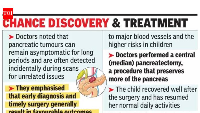 पुणे: कराटे वर्गादरम्यान झालेल्या दुखापतीनंतर पोटदुखीसाठी वैद्यकीय तपासणी केल्यानंतर दहा वर्षांच्या मुलीला स्वादुपिंडाचा दुर्मिळ गाठ असल्याचे निदान झाले. या महिन्याच्या सुरुवातीला बाणेर येथील एका खासगी रुग्णालयात शस्त्रक्रियेद्वारे ट्यूमर काढण्यात आल्याचे डॉक्टरांनी सांगितले.मणिपाल हॉस्पिटल्सच्या डॉक्टरांनी सांगितले की, दुखापतीनंतर पोटात सतत अस्वस्थतेची तक्रार केल्यानंतर मुलाला तपासणीसाठी आणण्यात आले. इमेजिंग चाचण्यांमध्ये स्वादुपिंडात वस्तुमान असल्याचे दिसून आले. पुढील तपासणीत ते एक सॉलिड स्यूडोपॅपिलरी निओप्लाझम (SPN) असल्याची पुष्टी झाली – एक असामान्य, निम्न-दर्जाचा घातक ट्यूमर.डॉक्टरांनी सांगितले की स्वादुपिंडाच्या ट्यूमरमध्ये SPN चे प्रमाण कमी आहे. हे पौगंडावस्थेतील आणि तरुण प्रौढांमध्ये, प्रामुख्याने मुलींमध्ये अधिक वेळा पाहिले जाते. लहान मुलांमध्ये ही घटना कमी सामान्य आहे. रुग्णाला कोणतीही पूर्वीची लक्षणे नव्हती आणि दुखापतीनंतरच्या मूल्यांकनादरम्यान ट्यूमर योगायोगाने आढळून आला, ते पुढे म्हणाले.सल्लागार सर्जिकल ऑन्कोलॉजिस्ट डॉ अमित पारसनीस म्हणाले, “शस्त्रक्रियेदरम्यान स्वादुपिंडाच्या शरीररचनेचे मूल्यांकन केल्यानंतर, अधिक व्यापक व्हिपल प्रक्रियेऐवजी, आम्ही एक विशेष मध्यवर्ती किंवा मध्य स्वादुपिंडाची शस्त्रक्रिया केली. अशा प्रकारे, आम्ही पक्वाशय आणि स्वादुपिंडाचा काही भाग जतन करू शकलो कारण रक्ताच्या चयापचयाशी रक्तसंक्रमण होते. रक्तवाहिन्या आणि मुलांमध्ये रक्त कमी होण्याची सहनशीलता कमी असते. तथापि, ट्यूमर सुरक्षितपणे काढण्यात आला आणि स्वादुपिंडाचे कार्य जतन केले गेले,” तो म्हणाला.डॉक्टरांनी सांगितले की स्वादुपिंडाच्या गाठी दीर्घकाळ लक्षणे नसतात आणि संबंधित नसलेल्या तक्रारींसाठी स्कॅन करताना आढळून येतात. लवकर निदान आणि वेळेवर शस्त्रक्रिया केल्याने सामान्यत: कमी दर्जाच्या ट्यूमरच्या बाबतीत चांगले परिणाम होतात, ते पुढे म्हणाले.रुग्णालयाच्या अधिकाऱ्यांनी सांगितले की, शस्त्रक्रियेनंतर मूल बरे झाले आहे आणि त्याने नेहमीच्या कामांना सुरुवात केली आहे. ही प्रक्रिया सर्जिकल ऑन्कोलॉजिस्ट, बालरोग शल्यचिकित्सक आणि गॅस्ट्रोएन्टेरोलॉजिस्ट, ऍनेस्थेटिस्ट आणि लहान मुलांच्या अतिदक्षता तज्ज्ञांच्या समावेश असलेल्या बहु-अनुशासनात्मक टीमने केली होती, हॉस्पिटलने सांगितले.