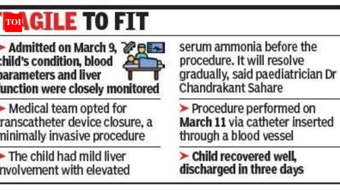 पुणे: एका दीड वर्षाच्या मुलीला 50,000 पैकी एक दुर्मिळ जन्मजात रक्तवहिन्यासंबंधी ॲबरनेथी मॅलफॉर्मेशन या आजारातून यशस्वीरित्या वाचवण्यात आले ज्यामध्ये पोट आणि आतड्यांमधून रक्त थेट हृदयात जाते, ते फिल्टर करून प्रथम यकृतातून जाते.प्रसूतीपूर्व निदानाने बालकाची स्थिती प्रतिबिंबित केली आणि डॉक्टरांसाठी शस्त्रक्रिया आव्हानात्मक होती.विश्वराज हॉस्पिटलचे बाल हृदयरोगतज्ज्ञ डॉ आशिष बनपूरकर म्हणाले, “सामान्य मुलामध्ये पोट आणि आतड्यांमधले रक्त पोर्टल शिरांमधून यकृताकडे वाहते, जिथे ते हृदयात जाण्यापूर्वी फिल्टर केले जाते. तथापि, या प्रकरणात, पोर्टल शिरा यकृताला बायपास करत होत्या आणि असामान्यपणे व्हेव्हिया हृदयाशी थेट जोडल्या गेल्या होत्या. परिणामी, यकृतासंबंधी रक्ताभिसरण चांगले विकसित झाले नाही आणि फुफ्फुसाचा उच्च रक्तदाब आणि असामान्य रक्ताभिसरण (पल्मोनरी एव्ही विकृती) विकसित होण्याची शक्यता होती. आम्ही मुलासाठी असामान्य कनेक्शन बंद करण्याची योजना आखली आहे.”ते म्हणाले की जर उपचार केले नाही तर अशा असामान्य रक्ताभिसरणामुळे यकृत, फुफ्फुस आणि एकूणच चयापचय प्रभावित होणारी गुंतागुंत होऊ शकते. “मुलाला निरीक्षणाखाली ठेवण्यात आले होते आणि रक्तातील अमोनियाच्या पातळीत वाढ झाल्यामुळे त्याला प्रवेश आवश्यक होता, ज्याचे व्यवस्थापन पुराणमतवादी पद्धतीने केले गेले होते. मूल्यांकनादरम्यान, डॉक्टरांनी मुलाला दुर्मिळ जन्मजात ॲबरनेथी मॅलफॉर्मेशन असे निदान केले, ज्याला जन्मजात पोर्टोसिस्टेमिक शंट देखील म्हणतात. मुलाला कमीतकमी हल्ल्याच्या हृदयाच्या प्रक्रियेतून ठेवण्यात आले होते.”तिला 9 मार्च रोजी दाखल करण्यात आले आणि मुलाची क्लिनिकल स्थिती, रक्ताचे मापदंड आणि यकृताचे कार्य काळजीपूर्वक मूल्यमापन आणि परीक्षण केले गेले. वैद्यकीय पथकाने ट्रान्सकॅथेटर उपकरण बंद करण्याचा निर्णय घेतला, एक कमीत कमी आक्रमक प्रक्रिया, डॉ सत्यजित फुंडे, रुग्णालयाचे रेडिओलॉजिस्ट.11 मार्च रोजी प्रक्रियेदरम्यान, डॉक्टरांनी रक्तवाहिनीद्वारे कॅथेटर घातला आणि पोर्टल शिरासंबंधीचा दाब आणि रक्त प्रवाह गतिशीलता मोजण्यासाठी तपशीलवार अँजिओग्राफी केली.कार्डियाक ऍनेस्थेसियोलॉजिस्ट डॉ. विठ्ठल शेंडगे म्हणाले, “एकदा टीमने पुष्टी केली की असामान्य कनेक्शन सुरक्षितपणे बंद केले जाऊ शकते, शंट ब्लॉक करण्यासाठी एक खास डिझाइन केलेले ऑक्लूजन डिव्हाइस तैनात केले गेले. प्रक्रियेनंतर इमेजिंग आणि सोनोग्राफीने पुष्टी केली की डिव्हाइस योग्यरित्या स्थित आहे आणि यकृतामध्ये रक्त प्रवाह पुनर्संचयित झाला आहे.”मुलाने या प्रक्रियेस चांगला प्रतिसाद दिला आणि तीन दिवसात त्याला सोडण्यात आले. “आम